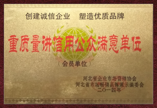 “重質量講信用公眾滿意單位”、“重質量講誠信重點展示單位”
